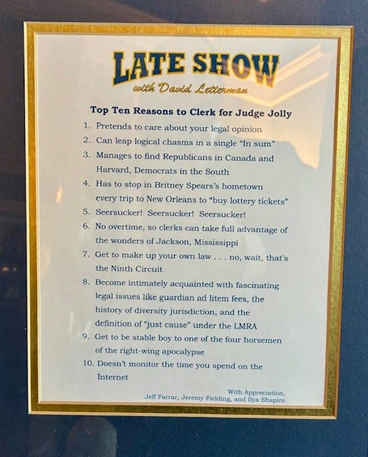I was 26-27 when I spent that year in the Deep South learning what all those complicated rules and fancy ideas I learned about in law school meant in practical terms. As I wrote in a City Journal tribute to Judge Jolly, that experience taught me a lot about the law for sure, but also about life.